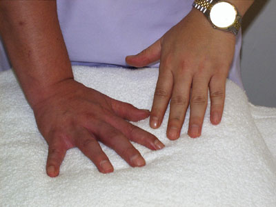 This photo captures the dramatic difference in blood content and circulation brought on by Dr. Kim's Chi Kung. By focusing his intent and breathing, Dr. Kim is able to direct his vital energy, or Chi, into various parts of his own body and transmit it into his patients for therapeutic purposes.